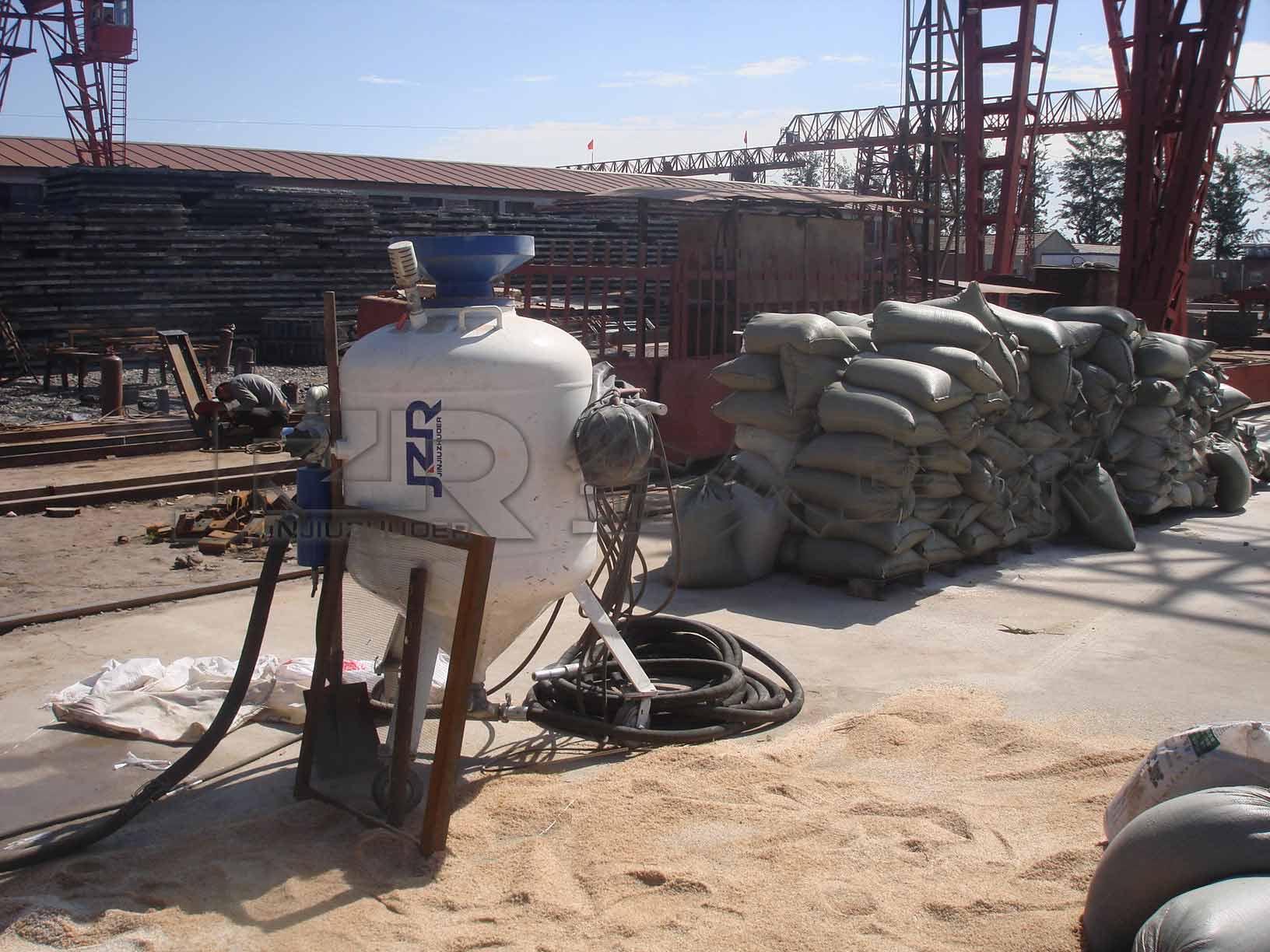 JZK-700P manual sandblasting machine is suitable for sandblasting in sandblasting rooms, sandblasting rooms, and open sandblasting operations in the open field. It is used for the treatment of oxide scales on workpieces of special materials and harder materials. The equipment has high pressure and high efficiency sandblasting performance. It is one of the ideal equipment for cleaning, removing rust, paint, descaling, strengthening the surface, and eliminating internal stress before coating the surface of large metal structures. (See sandblasting machine video)